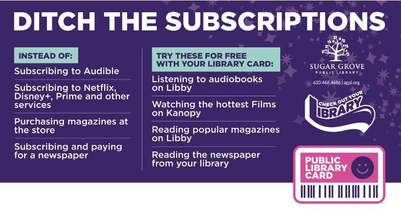 Our mission is to be a unique resource to offer open access to information that fosters a passion for reading, learning, and the exchange of ideas. As the heart of our community, we support democracy, citizenship, and the cultural growth of the Sugar Grove Public Library District.