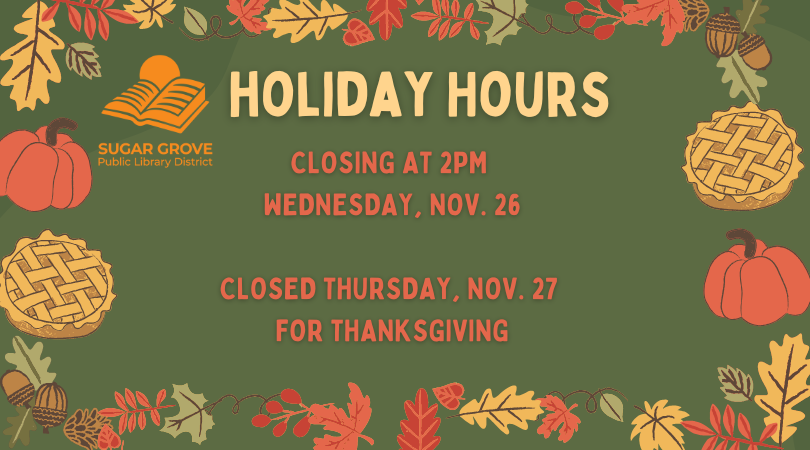 Our mission is to be a unique resource to offer open access to information that fosters a passion for reading, learning, and the exchange of ideas. As the heart of our community, we support democracy, citizenship, and the cultural growth of the Sugar Grove Public Library District.